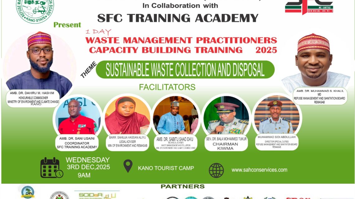 The Refuse Management and Sanitation Board (REMASAB) has partnered with Sahcon Fumigation and Cleaning Services (SFC) to train waste management practitioners in Kano, as part of renewed efforts to strengthen sustainable waste collection and disposal across the state.